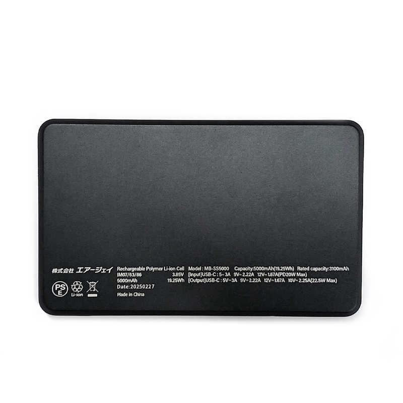 エアージェイ AIR-J モバイルバッテリー 5000mAh 準固体リチウムイオン ブラック MB-SS5000 BK