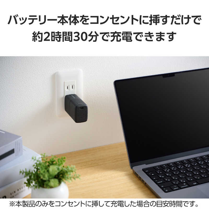 ■コンセントに挿すだけで本製品を直接充電可能。本製品は約2時間30分で充電できます。