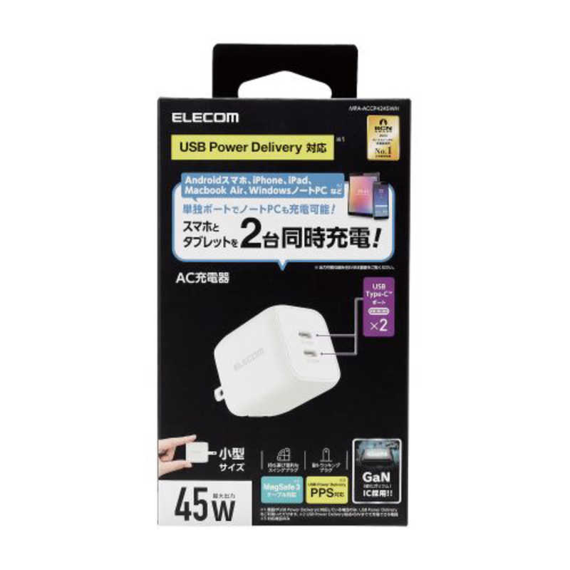 エレコム ELECOM USB Type-C 充電器 PD PPS対応 合計出力 45W Type C ×2 ホワイト MPA-ACCP4245WH