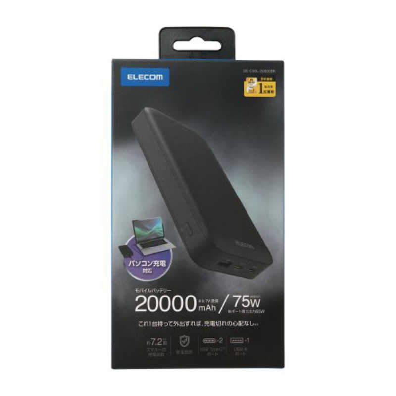 エレコム ELECOM USB 残量が見える高出力モバイルバッテリー(10000mAh/30W) DE-C51L-10000BK