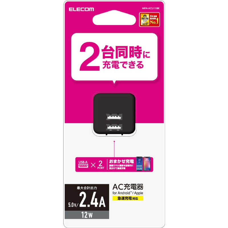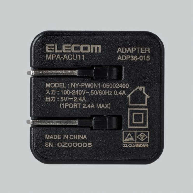 エレコム ELECOM コンパクトAC充電器(2.4A/Aポート×2)キューブ型 ブラック MPA-ACU11BK
