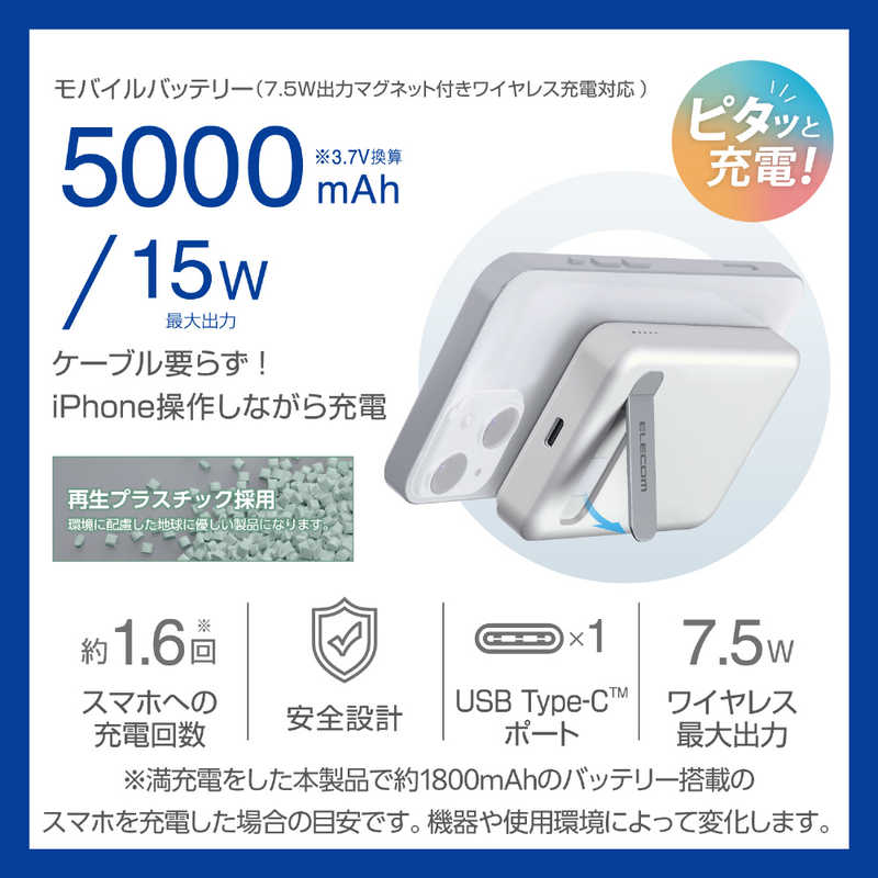 ■MagSafe対応iPhoneにマグネットで取り付け、7.5Wでワイヤレス充電できるモバイルバッテリーです。