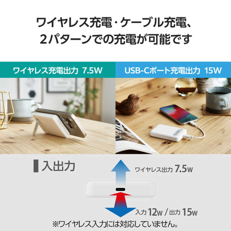 ■出力:USB Type-Cポート:15W、ワイヤレス充電:7.5W
