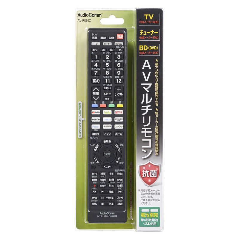 オーム OHM AVマルチリモコン 抗菌タイプ ブラック AV-R860Z