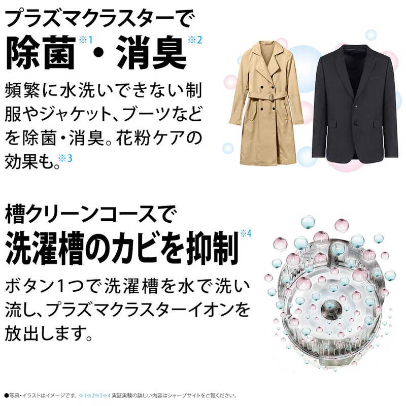 ●洗えない衣類を除菌・招集。洗濯槽のカビ菌抑制も「プラズマクラスター搭載」。