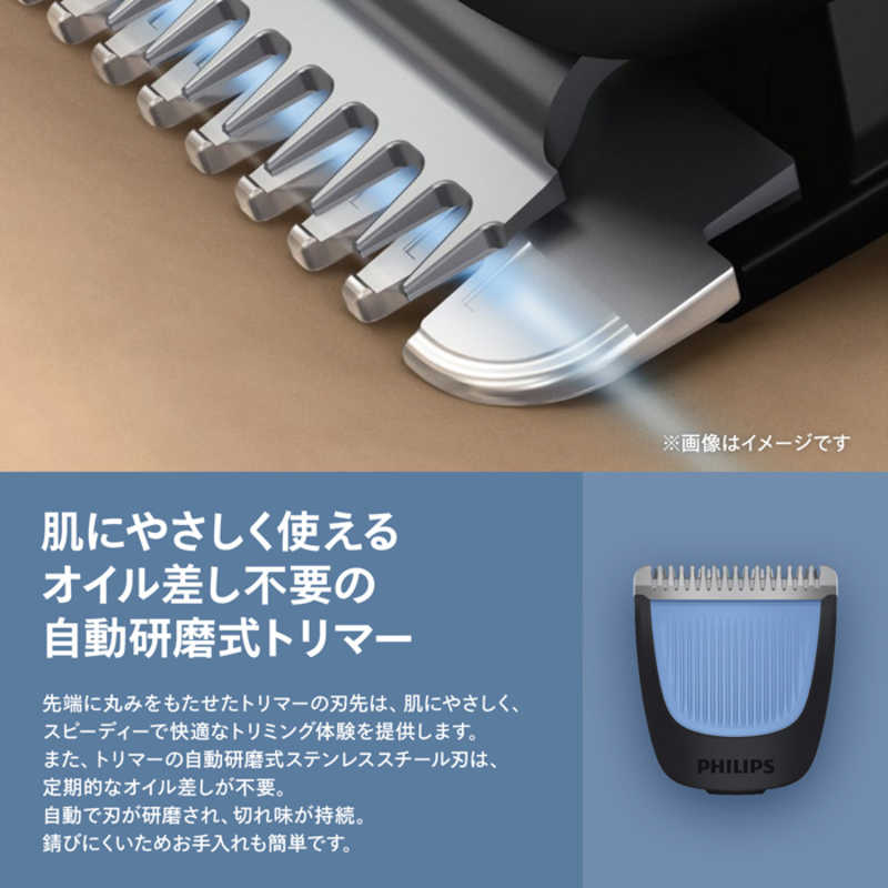 ●素早く&精確なトリミング いつでもすばやく快適。シャープな切れ味を保つ自動研磨式のトリマーを搭載。先端に丸みをもたせた刃先は、肌にやさしくスピーディーにトリミングできます。さらに2つのコームとズームロック長さ調整ホイールで40段階の長さ調整ができます