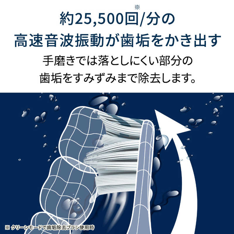 ブラッシングモードタテ方向とヨコ方向の振動を組み合わせた立体的な振動により、毛先が楕円運動をおこなうクリーンモードを搭載。