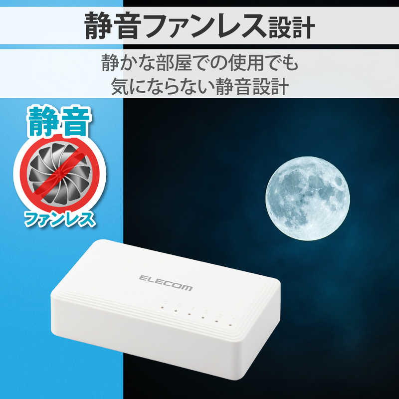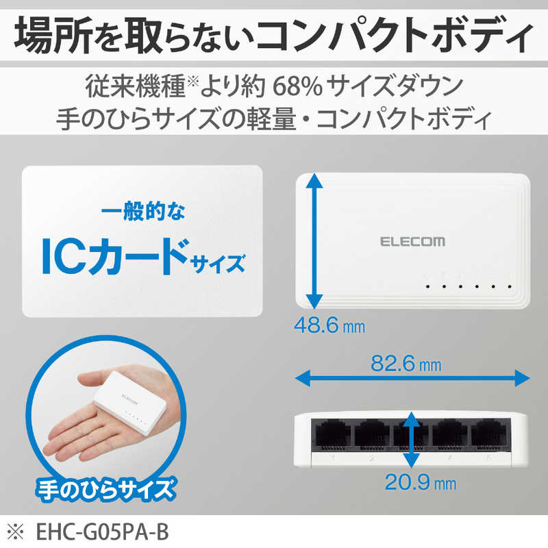 エレコム Giga対応5ポートスイッチ(プラ筐体/ACアダプター) ホワイト EHC-G05PA2-W