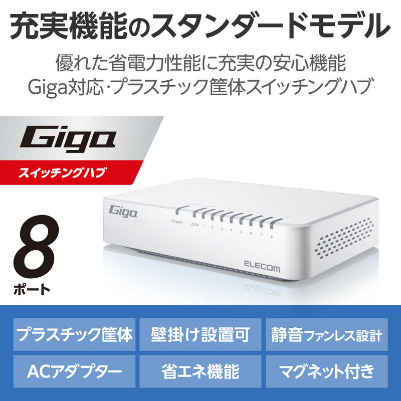 エレコム ELECOM Giga対応8ポートスイッチ(プラ筐体/ACアダプター) EHC-G08PA4-JW