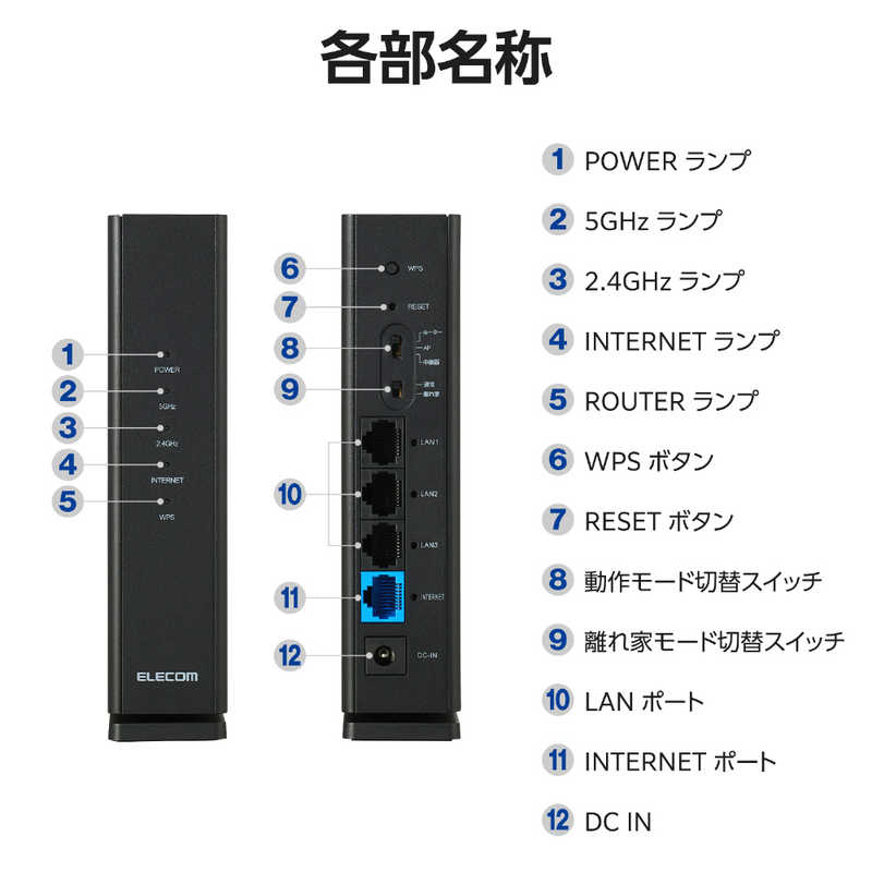 ●便利な「離れ家モード2」搭載。屋外を含む敷地内の母屋と離れた建物で中継器として使用可能なほか、「離れ家モード2」対応製品では全ての基本動作モードに対応。親機として使用している場合も、玄関先やベランダなど敷地内の屋外に設置されたデバイスと5GHz(W56のみ)でWi-Fiで接続することが可能です。
