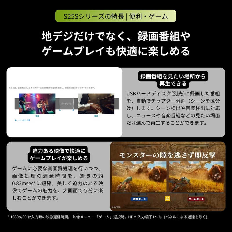 ●高画質:映像処理エンジン:レグザエンジンHR 地デジ高画質:地デジビューティ 自動映●像調整機能:おまかせオートピクチャー パネル:全面直下型LEDパネルモジュール