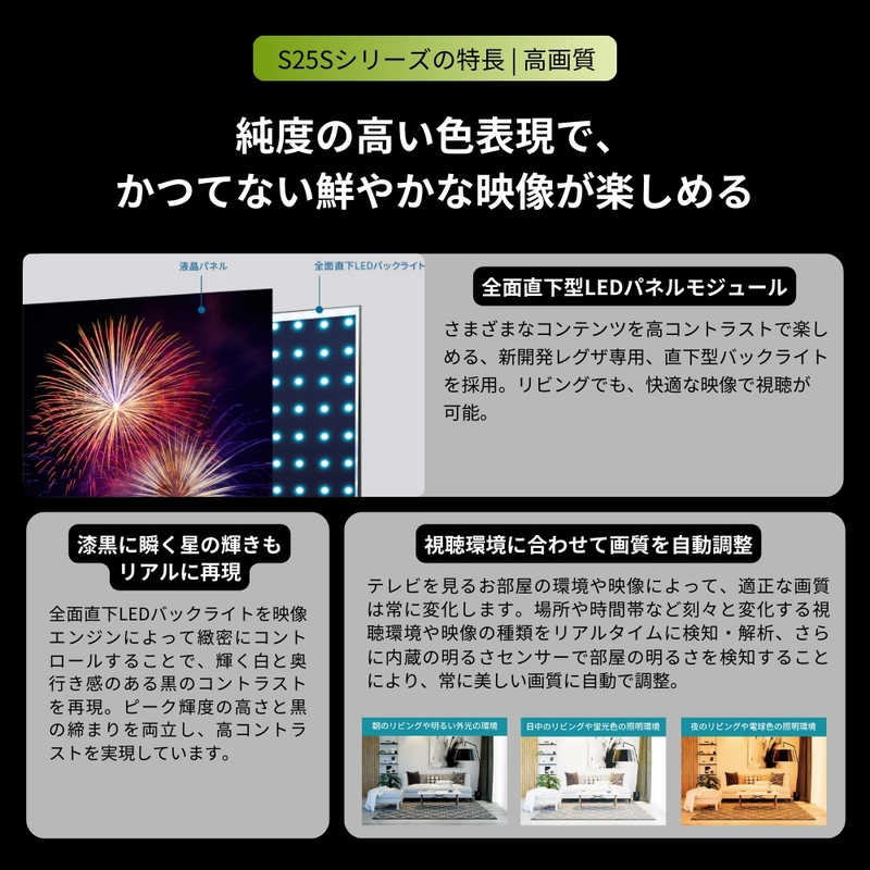 ●高画質:映像処理エンジン:レグザエンジンHR 地デジ高画質:地デジビューティ 自動映●像調整機能:おまかせオートピクチャー パネル:全面直下型LEDパネルモジュール
