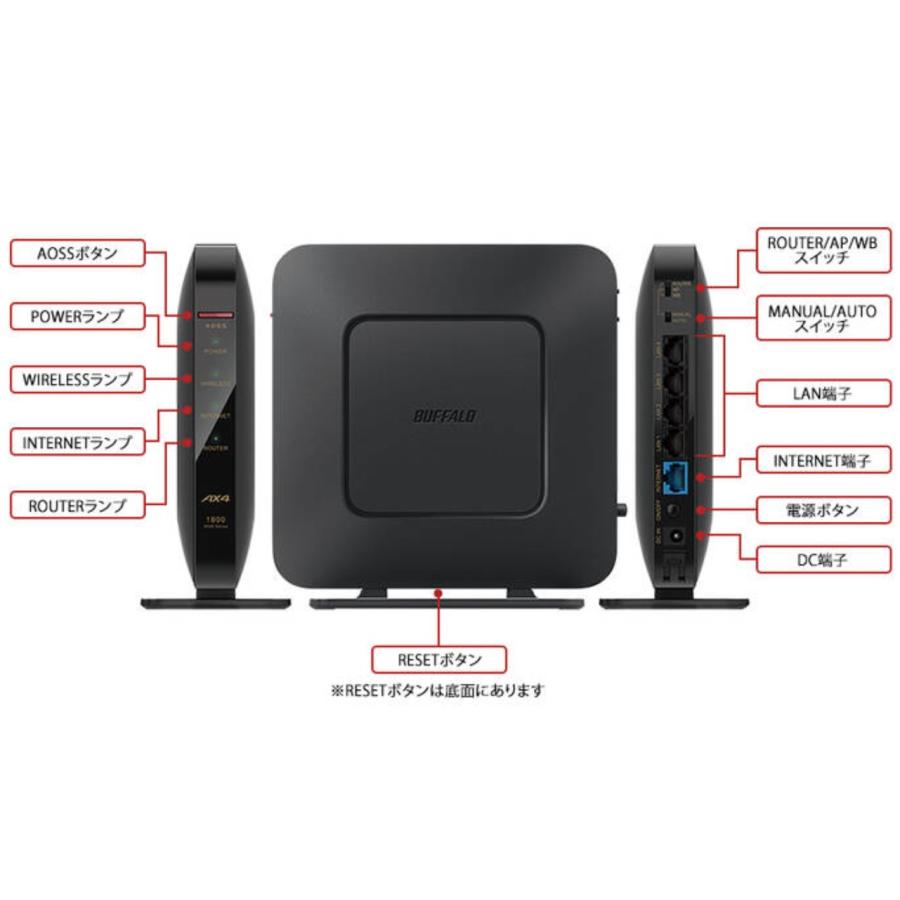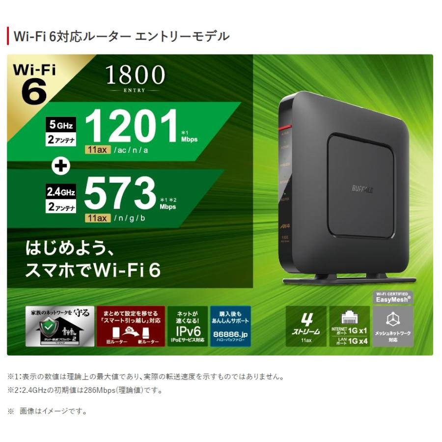 バッファロー BUFFALO 無線LANルーター Wi-Fi 6 1201+573Mbps ブラック WSR-1800AX4P-BK