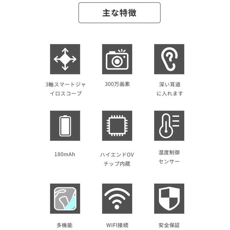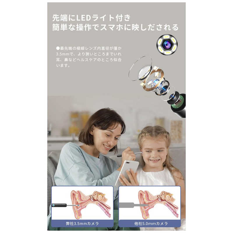 ●高輝度LED搭載 6個LEDライト付き、耳の奥まで見える 極細3.5mmレンズ内径。