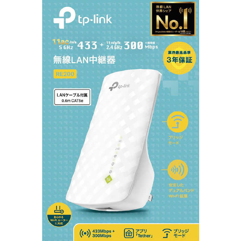 ティーピーリンク TP-Link 無線LAN中継器 AC750 433Mbps+300Mbps デュアルバンド RE200/R