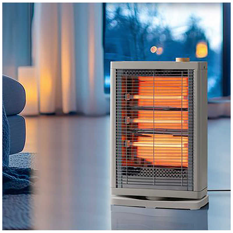 スリーアップ THREEUP 電気ストーブ 自動首振り機能付き 900W/600W/300W切替式 転倒OFFスイッチ機能搭載 グレージュ DST2512GG