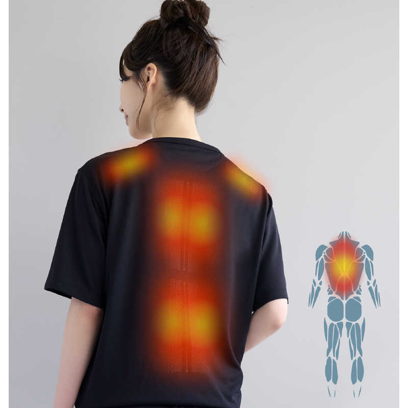 この素材は印刷された顔料に含まれており、遠赤外線を放出し、身体の内側から血行を促進することで疲労回復や筋肉のコリをほぐし、さらに睡眠の質の向上が期待できる新素材です。