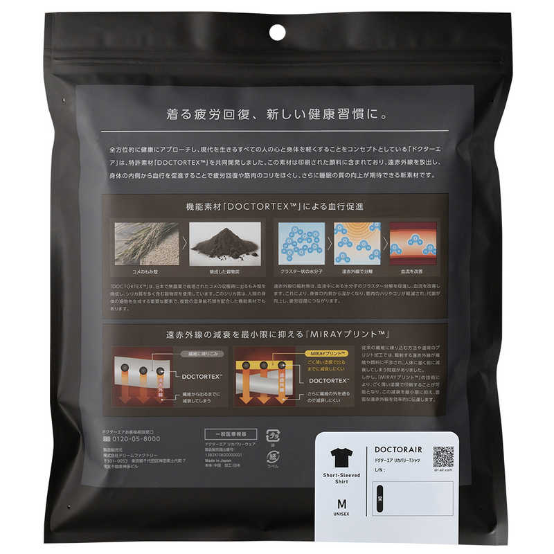 ドクターエア DOCTORAIR ドクターエア リカバリーTシャツ半袖(XL) RECOVERY T-SHIRT(XL) DOCTORAIR ブラック ARW-01XL