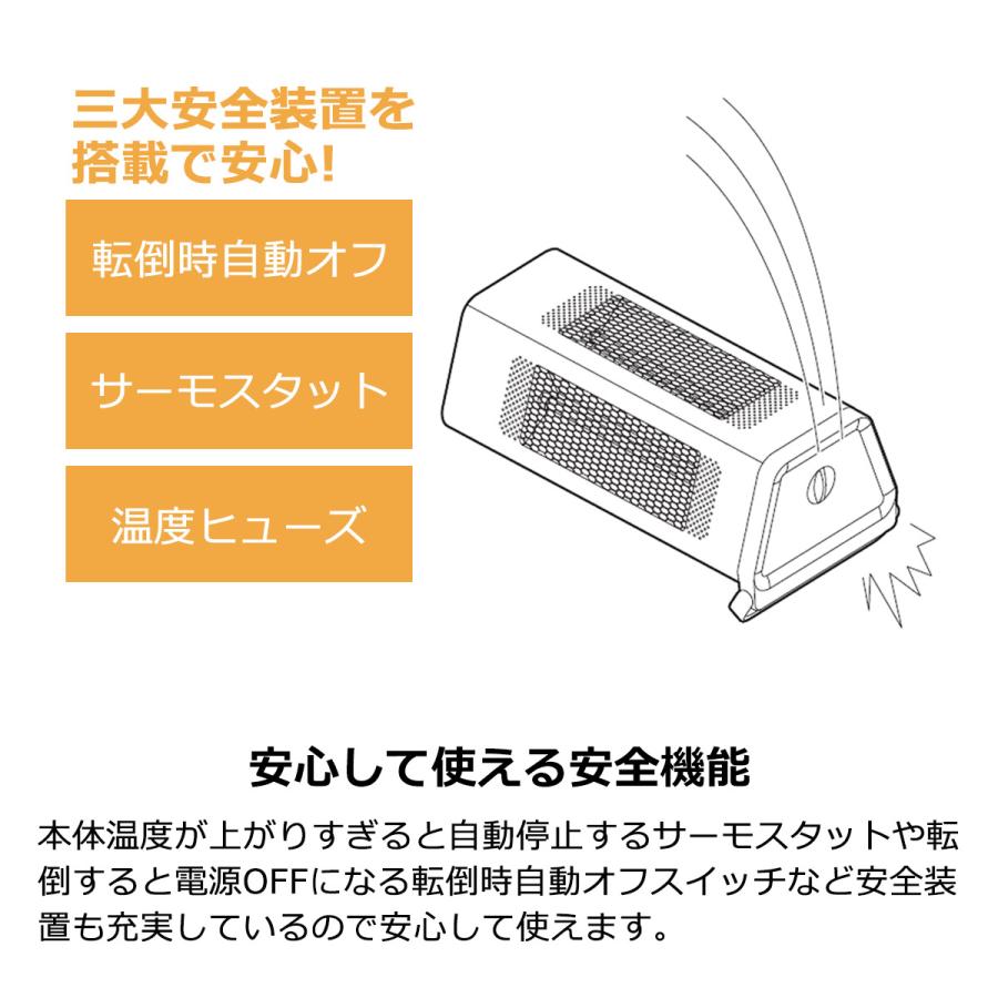 本体が倒れたり、傾いたりすると自動でオフになる安全設計です。