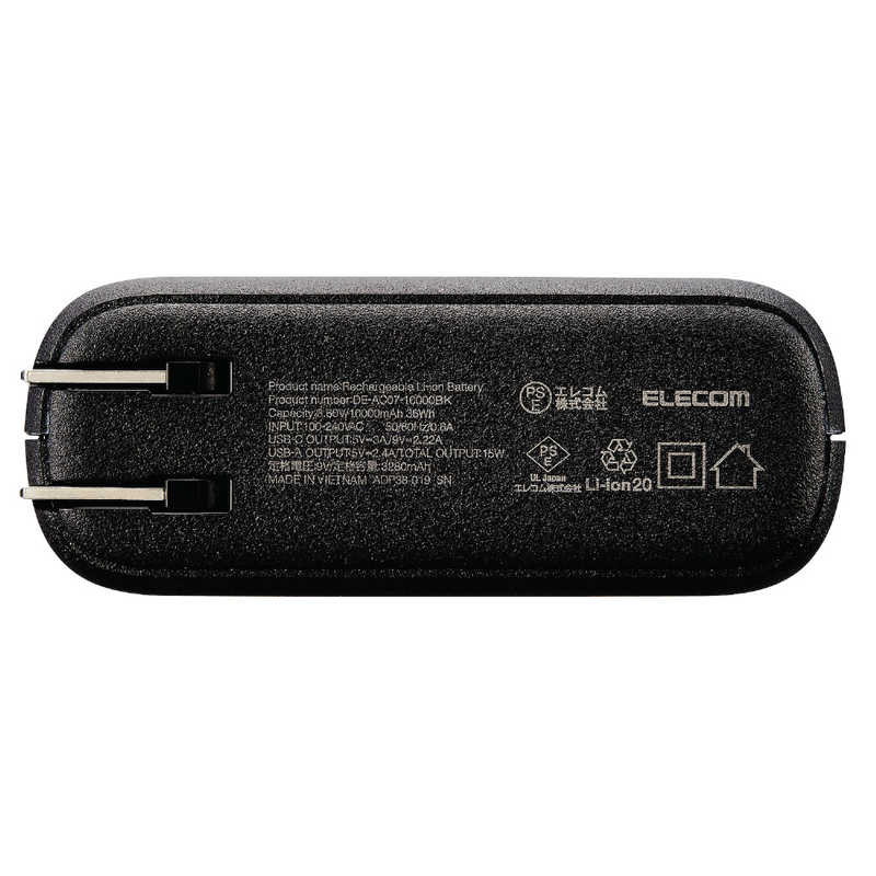 エレコム ELECOM モバイルバッテリー コンセント一体型 10000mAh 大容量 PD 20W 急速充電 2台同時充電可 PSE認証 DE-AC07-10000BK
