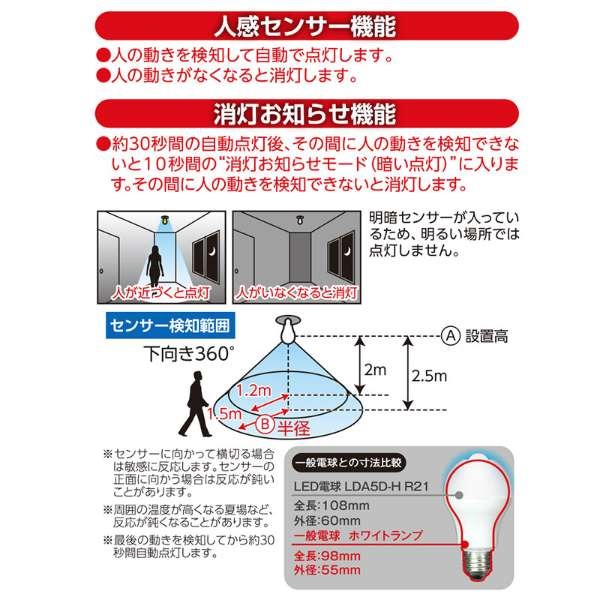 オーム電機 OHM LED電球E2640形相当人感明暗センサー付き昼光色LDA5D-H-R21