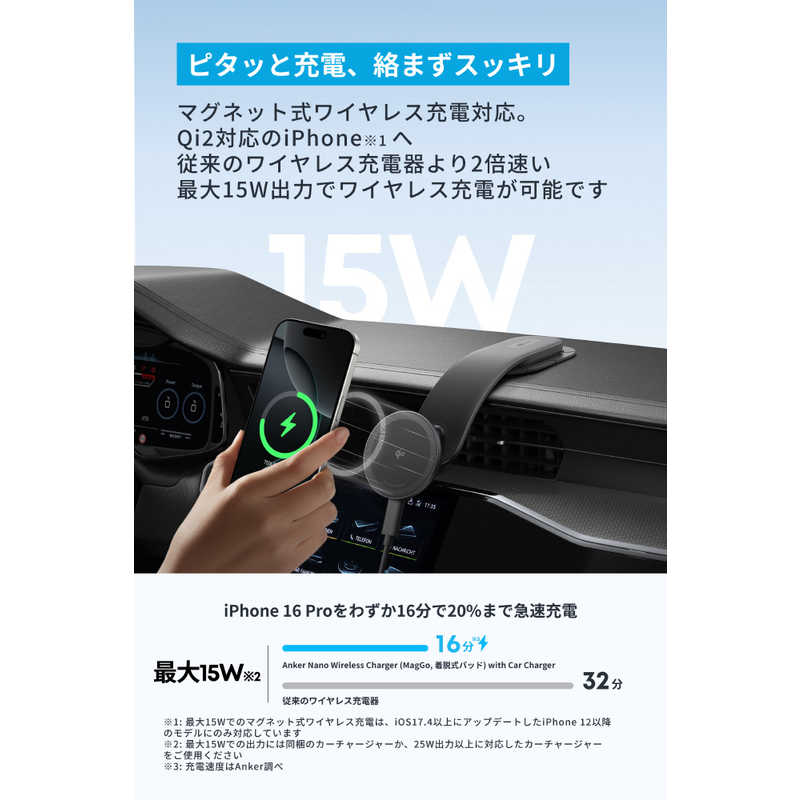 アンカー Anker カーチャージャー Anker Nano Wireless Charger MagGo 着脱式パッド B2216N11