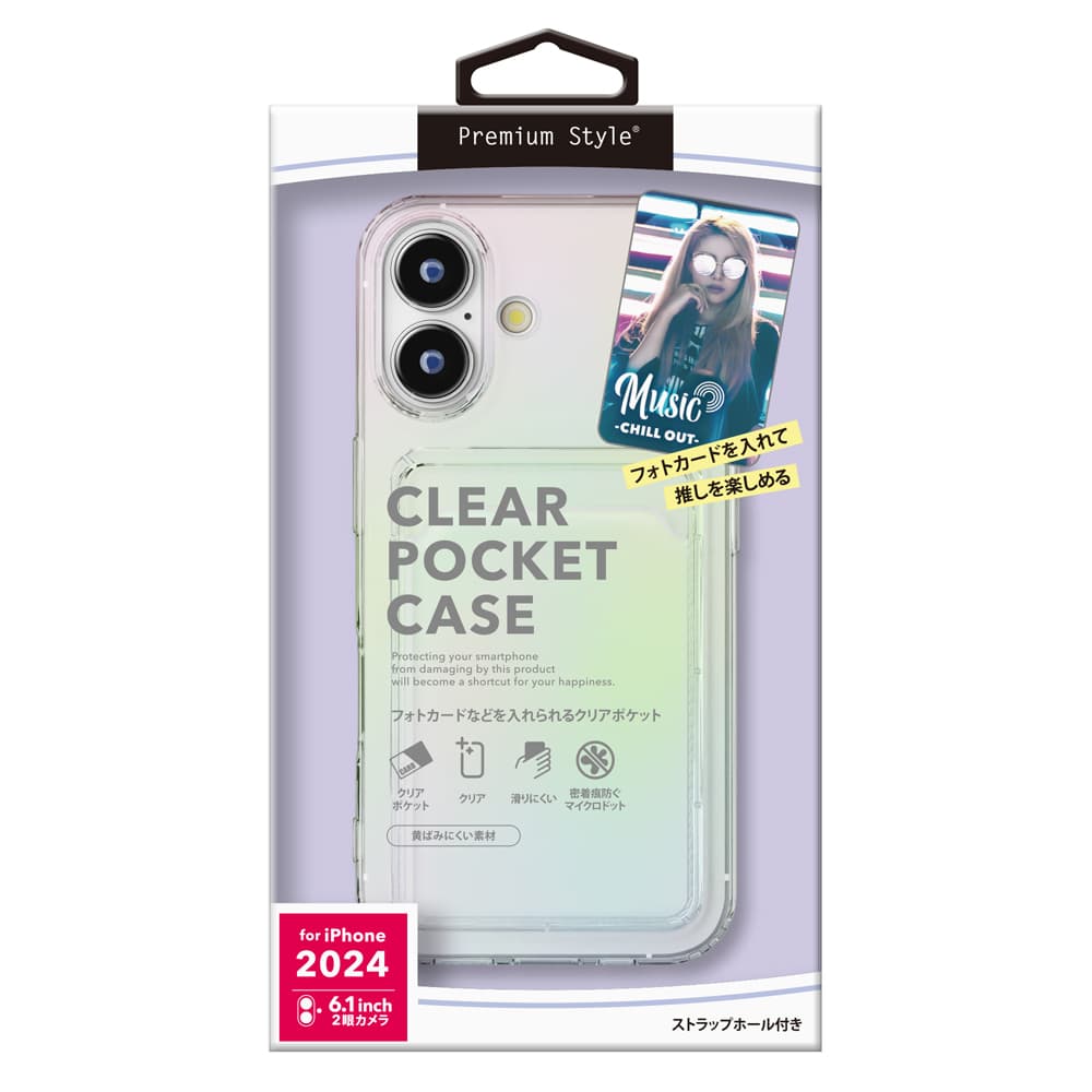 PGA iPhone 16(6.1インチ)クリアポケットケース Premium Style オーロラ PG-24ACTP02AR