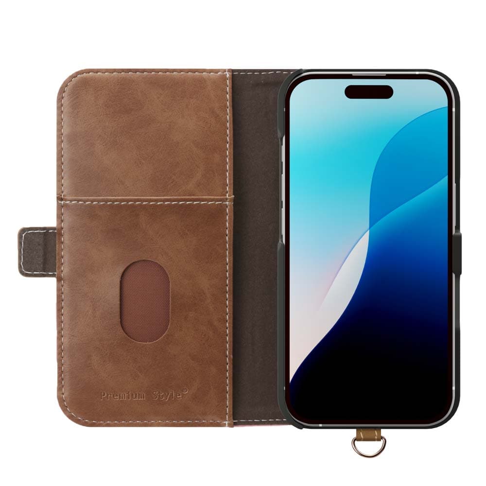 風合いの良い上質なPUレザー素材を使用した2024年 iPhone 6.1inch用 フリップカバーです。