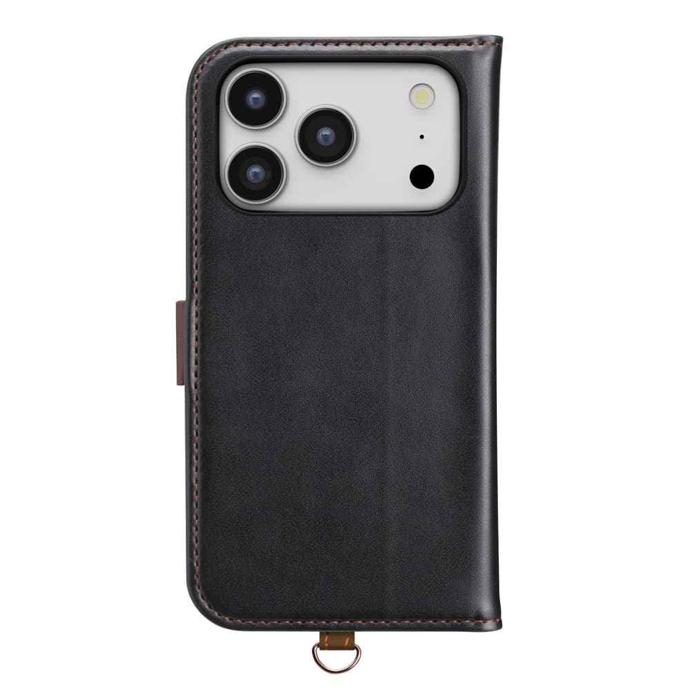 ●風合いの良い上質なPUレザー素材を使用したiPhone17Pro用フリップカバーです。上品で手触りのいいPUレザーは、シンプルなiPhoneのデザインとぴったりマッチします。特許取得済みのマグネットロックで、ラクラクカバーを開閉する事が可能。便利な横スタンド機能で動画の視聴をお楽しみ頂けます。通勤通学やお買い物に便利な2つのカードポケット・ショルダーストラップを取り付けするのに最適なストラップホール付き。カバーを付けたままワイヤレス充電が可能です。
