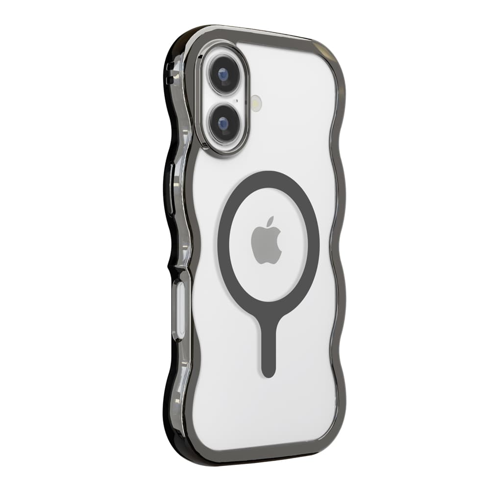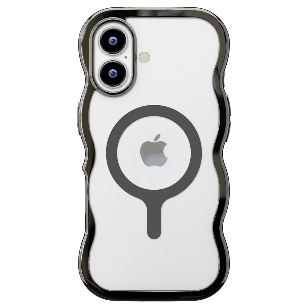 ●やわらかな波打つデザインが可愛らしい各種MagSafeアクセサリーに対応したiPhone17用ウェーブケースです。ケース背面はクリアタイプでiPhone本体の美しさを最大限に活かします。耐久性のあるポリカーボネイトとしなやかなTPUを組み合わせたハイブリッド設計で端末本体をしっかり保護します。マグネットリング搭載でMagSafeアクセサリーをピタッと簡単装着。お手持ちのストラップをつけて落下を防げるストラップホール付き。