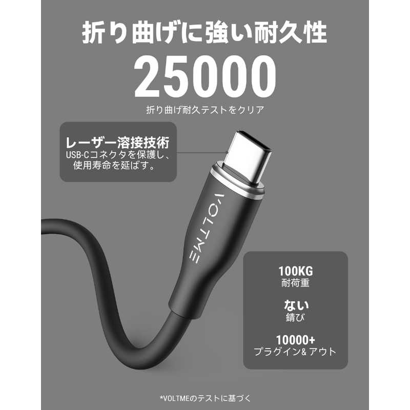 ● 高い耐久性: 2,5000回の折り曲げテストを実施したVOLTME USB ケーブルは一般的なケーブルより5倍以上の持続力を持ちます。