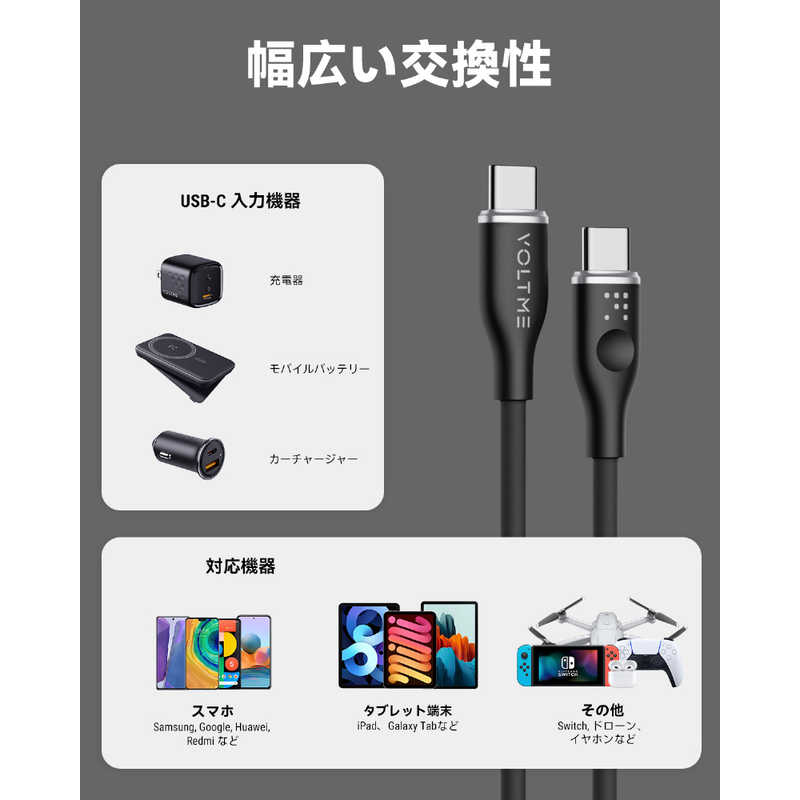 VOLTME モスシリーズシリコン 充電ケーブル USB-C&USB-C 60W 黒 1.8m C2136