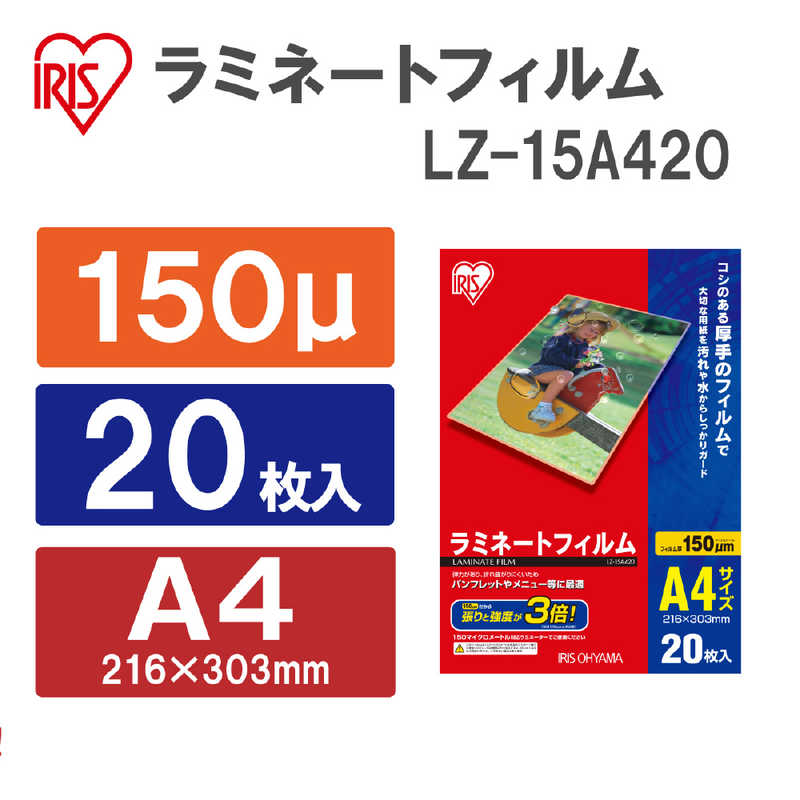 アイリスオーヤマ IRIS OHYAMA ラミネートフィルム (A4/20枚入り) LZ-15A420