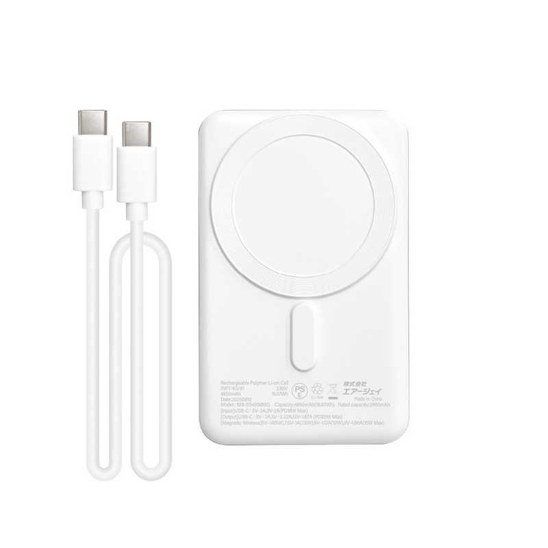 エアージェイ air-j マグネットワイヤレス充電対応 準固体モバイルバッテリー 4850mAh MBホワイト -SS4850MG WH
