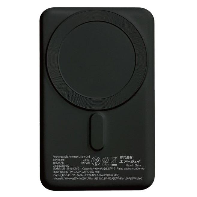 エアージェイ air-j マグネットワイヤレス充電対応 準固体モバイルバッテリー 4850mAh ブラック MB-SS4850MG BK