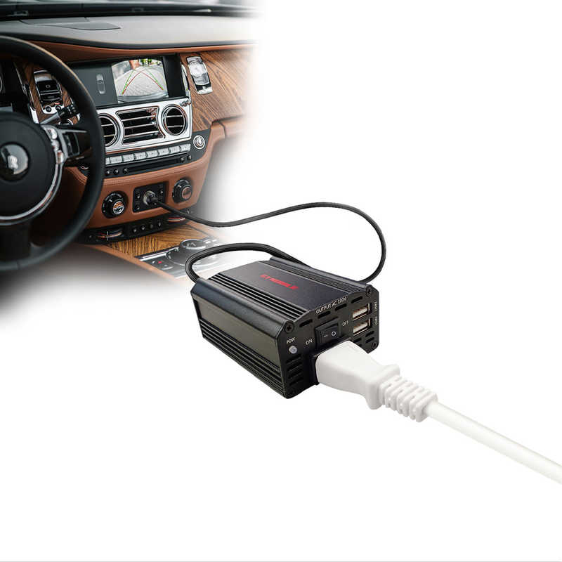 エアージェイ air-j 1コンセント+USB2ポート DC-ACインバーター 計3.1A 60cm ブラック DKJ-ACV1