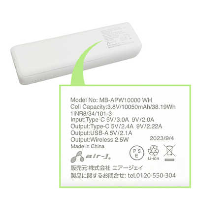 エアージェイ air-j Applewatchモジュール付きモバイルバッテリー10050mA MBAPW10000WH