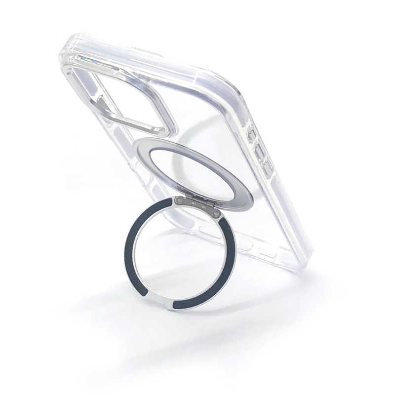 ●iPhone 16 Pro Max用MAGSAFE対応回転リングスタンドクリアケースです。