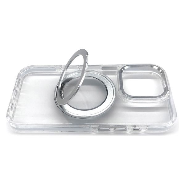 エアージェイ air-j iPhone 16 Pro(6.3インチ) Magsafe対応回転リングスタンドクリアケース シルバー ACP24PCMRSL