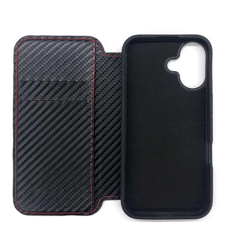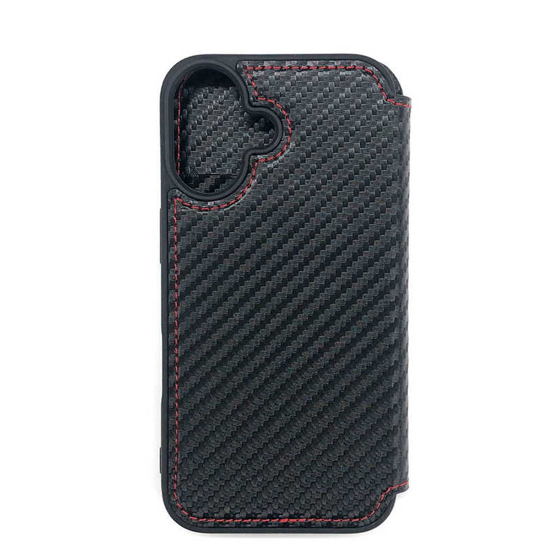 エアージェイ air-j iPhone 16用MAGSAFE対応 スリム手帳型ケース カーボン/レッドライン AC-P24-PMB CBR