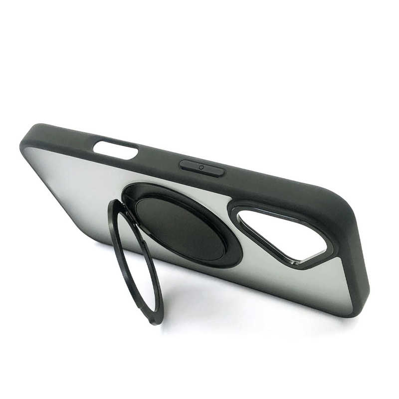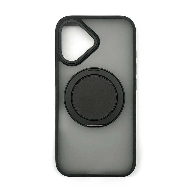 エアージェイ air-j iPhone 16用MAGSAFE対応カチカチ回転リングスタンドクリアケース ブラック AC-P24-MRS BK