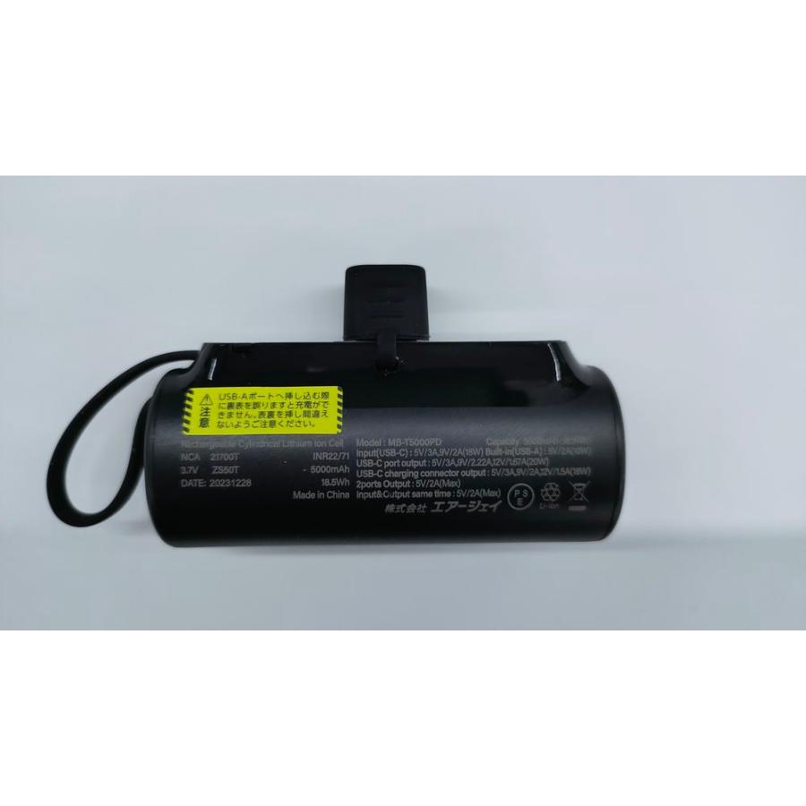 エアージェイ air-j Type-Cコネクター内蔵 高速充電PD20W対応モバイルバッテリー 5000mAh MBT5000PDBK
