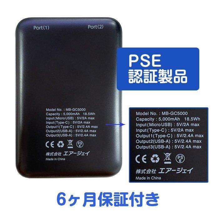 エアージェイ air-j 超うす型コンパクトモバイルバッテリー5000mAh 3台同時充電可 Type-Cポート搭載 コンパクトで軽い MB-GC5000