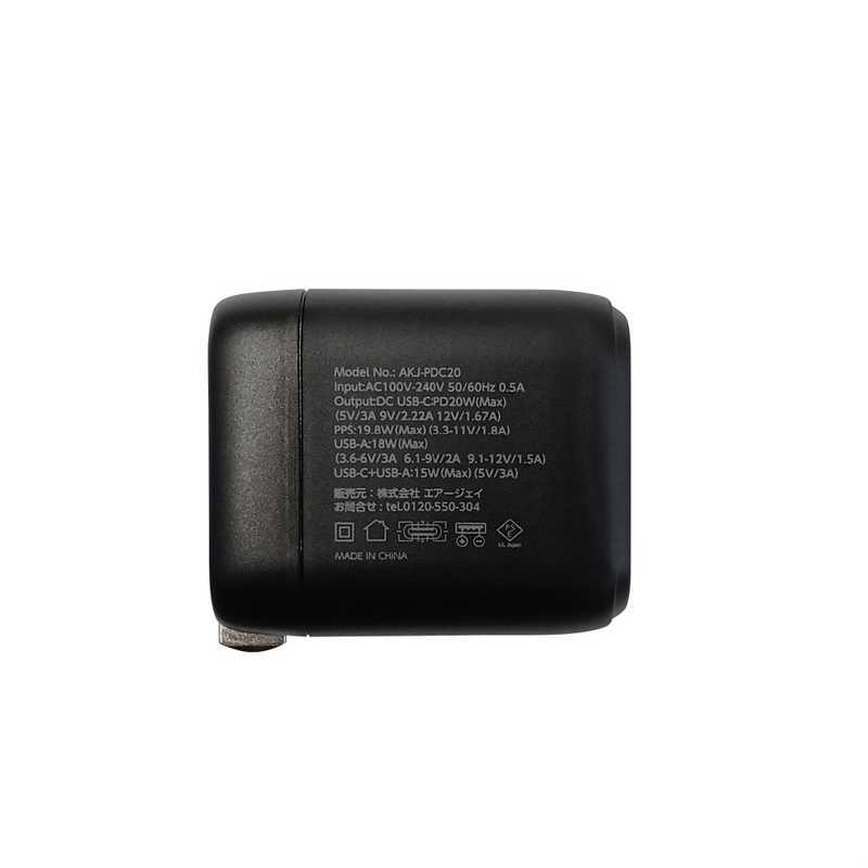 エアージェイ air-j PD20W対応 Type-C1ポート/USB1ポート AC充電器 ブラック AKJ-PDC20 BK