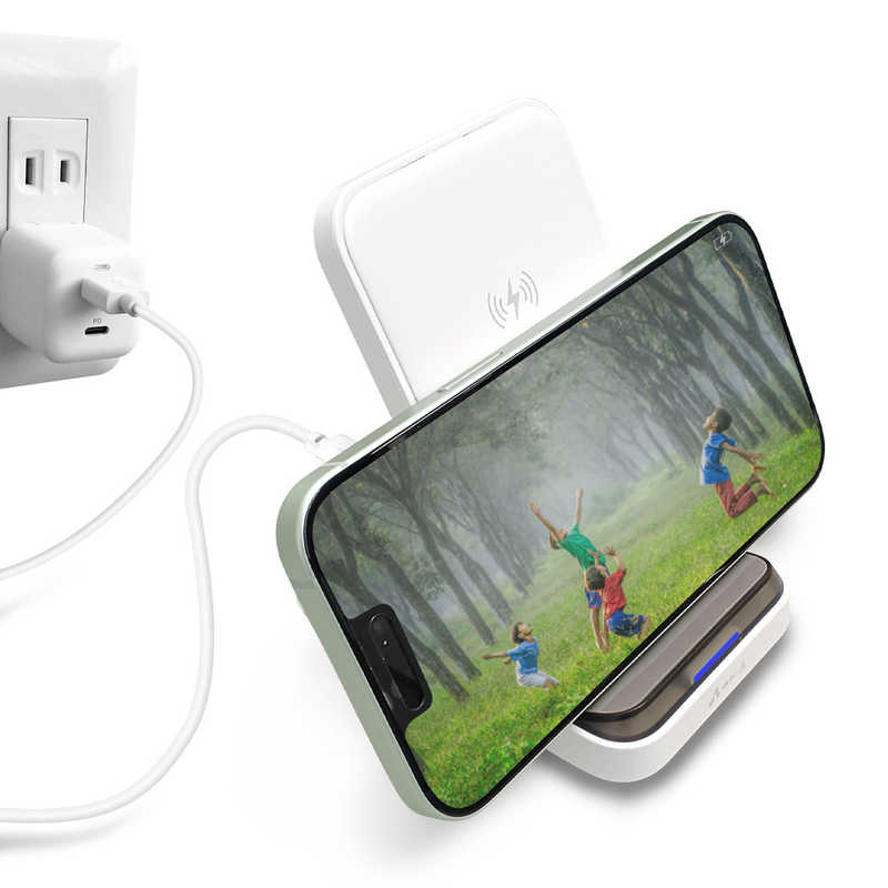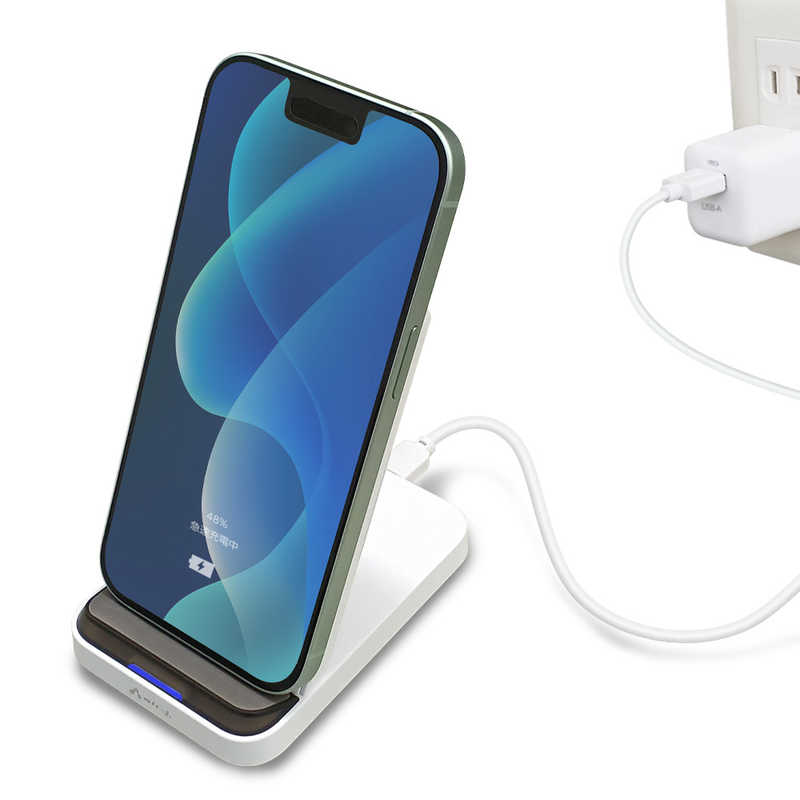 ●しっかり置けるスタンドタイプで充電中の「ズレ」や「落下」も安心。