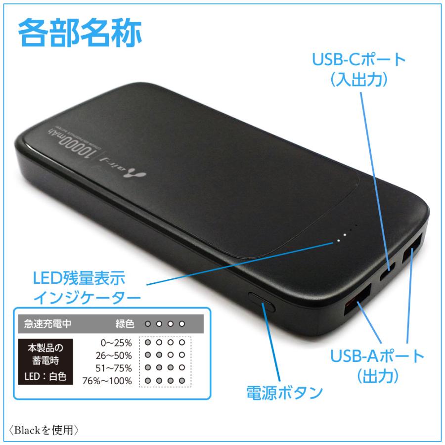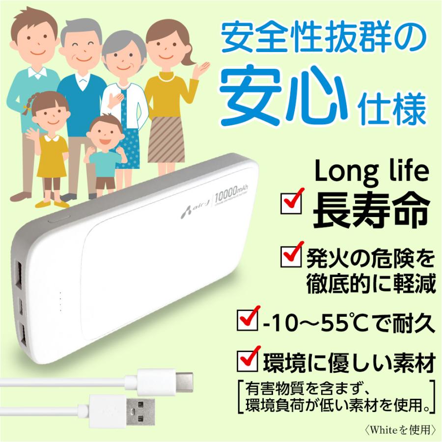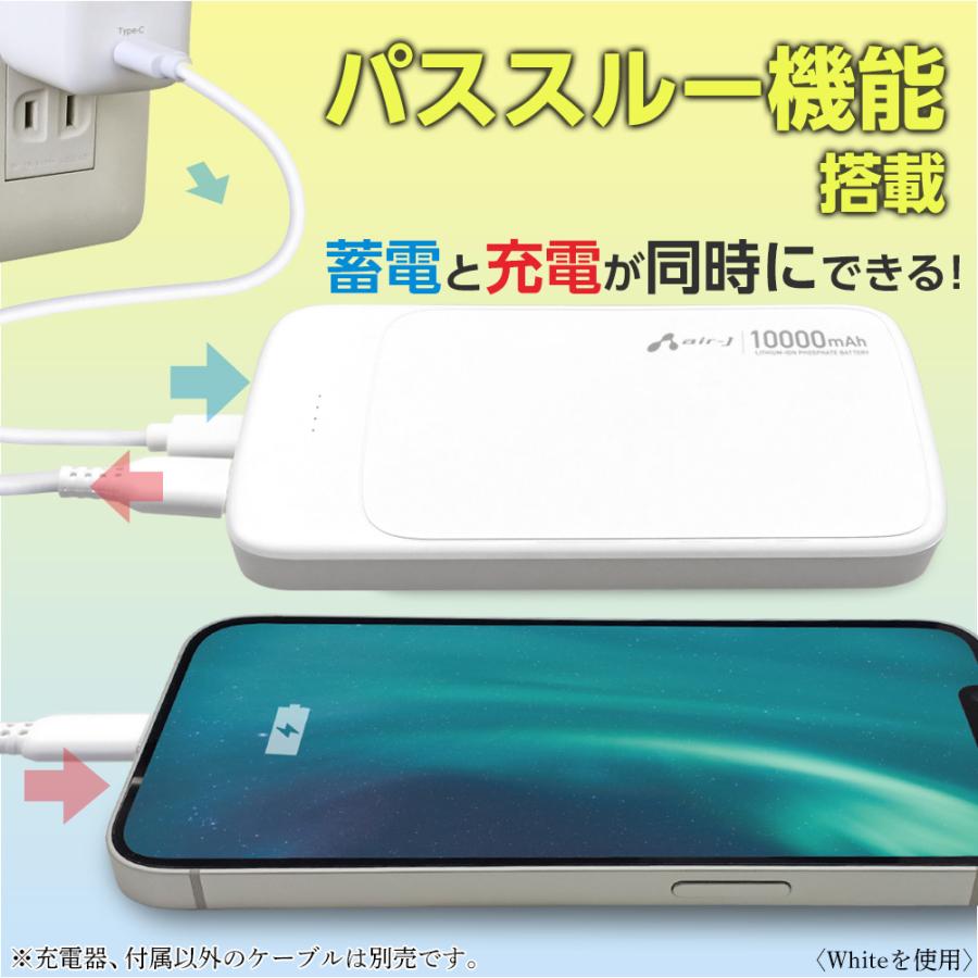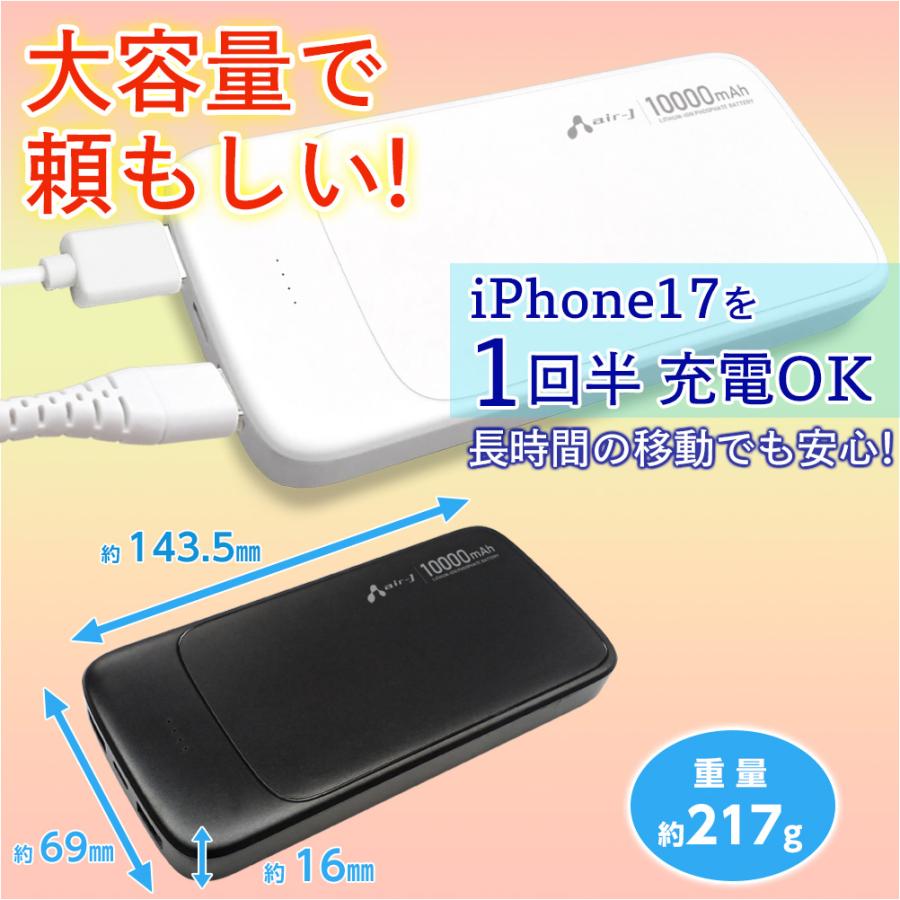 エアージェイ air-j リン酸鉄モバイルバッテリー 10000mAhエントリーモデル MB-LS10000MK2 WH