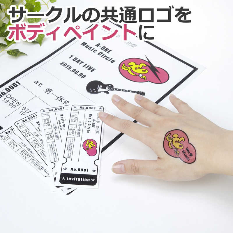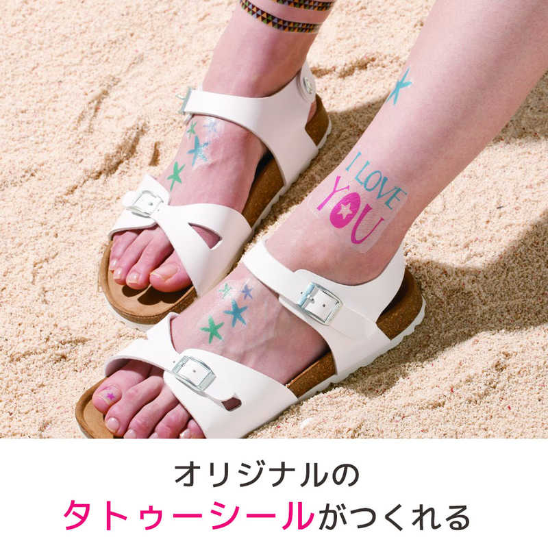 素材や場所を選ばずに、好きなところに貼れるインクジェット専用の転写シールです。肌に貼ってタトゥー風にもできます。