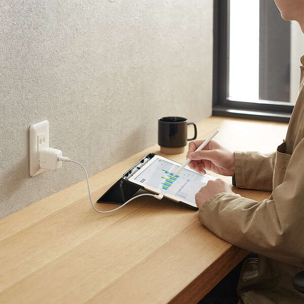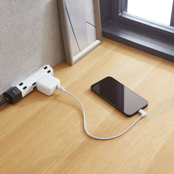 ●Apple社製品に対応したUSB-Aポート付きの充電器との接続で、家庭用コンセントから充電可能です。