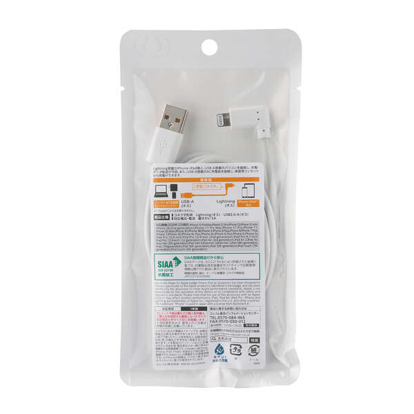 ●使用目的・用途:USB-A端子を持つパソコン及び充電器とLightningコネクターを搭載したiPhone、iPad、iPodを接続し、充電・データ転送が可能です。※iPadはパソコンからは充電出来ません。
