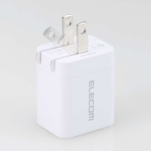 ●未使用時はコンセントプラグを折りたたんで充電器本体に収納可能です。スッキリとコンパクトに収納できるので、持ち運びにも便利です。